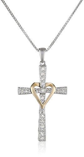 Sterling Silver and 14k Yellow Gold Diamond Cross and Heart Pendant Necklace, 18"