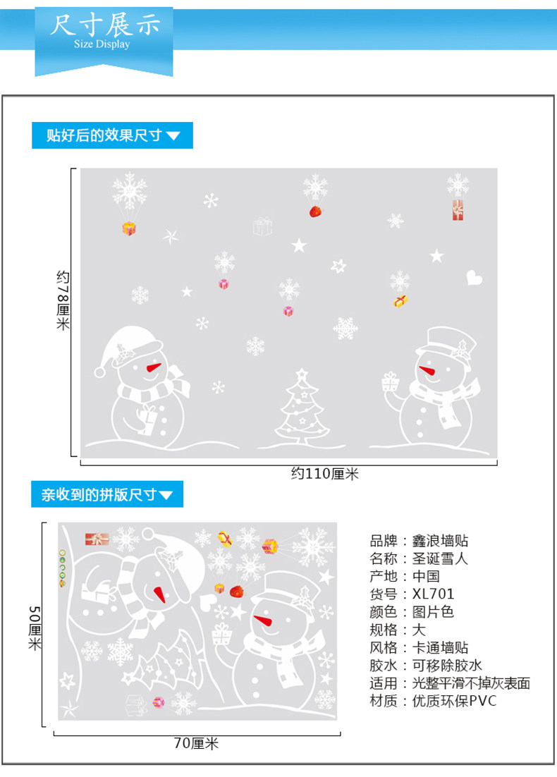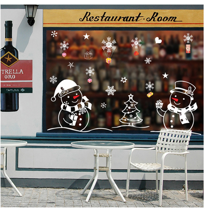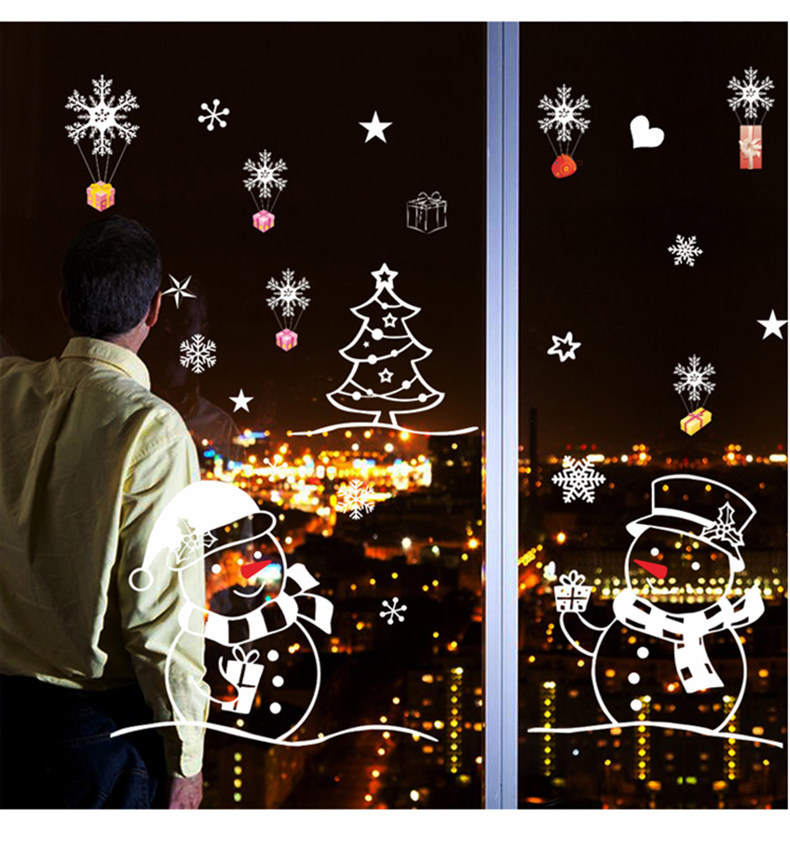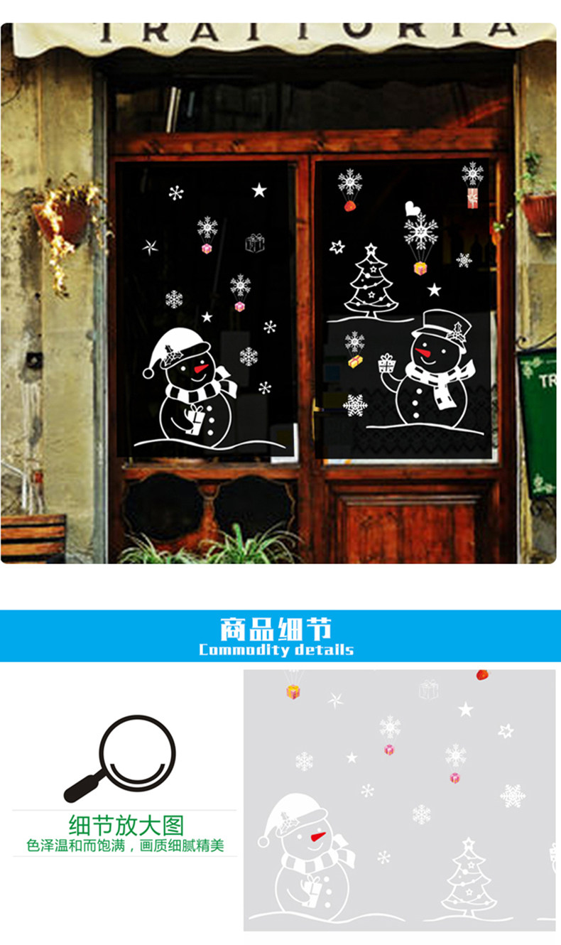 圣诞节雪人贴画雪花橱窗贴花玻璃门贴装饰品节日气氛自粘墙纸窗贴