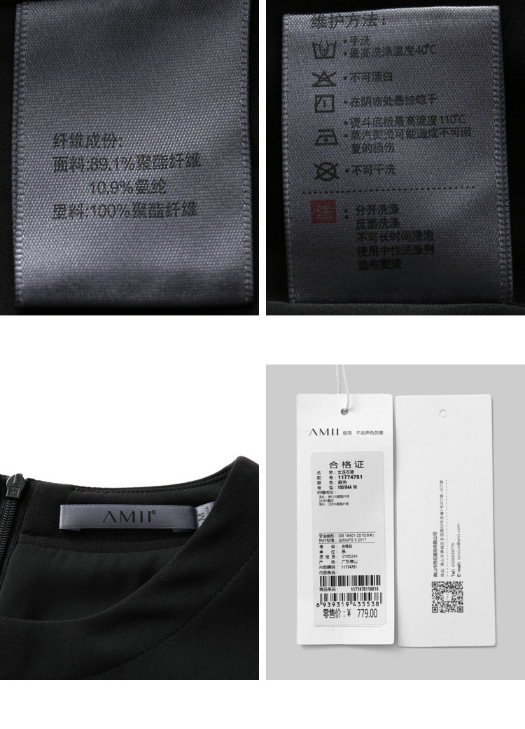 | 洗涤标准: | 不可漂白40℃以下手洗悬挂晾干不可浸泡不可干洗110℃以下垫布熨烫 |