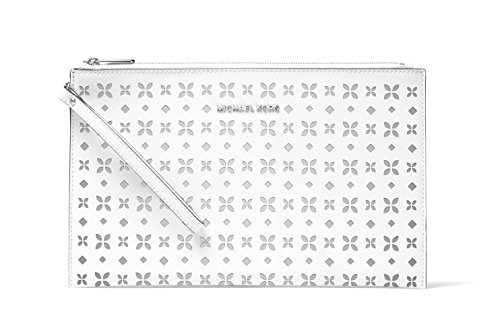-. Title : Jet Set Travel Extra-large Perforated-leather Clutch WHITE/SILVER