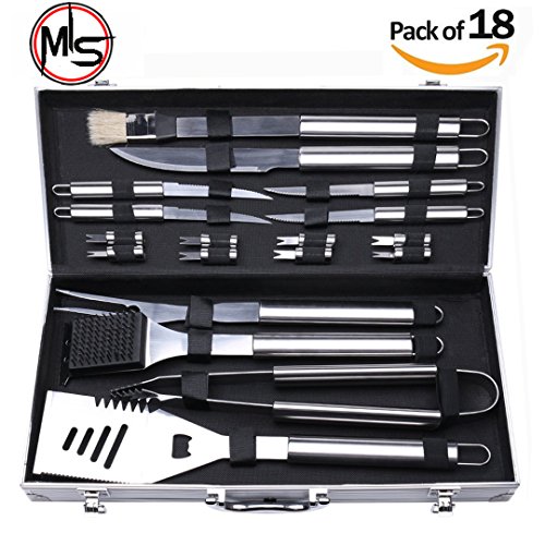 18pcs BBQ Grill Tool Set Stainless Steel Grilling Accessories with Aluminum Storage Case(mothers day/ fathersday gift)