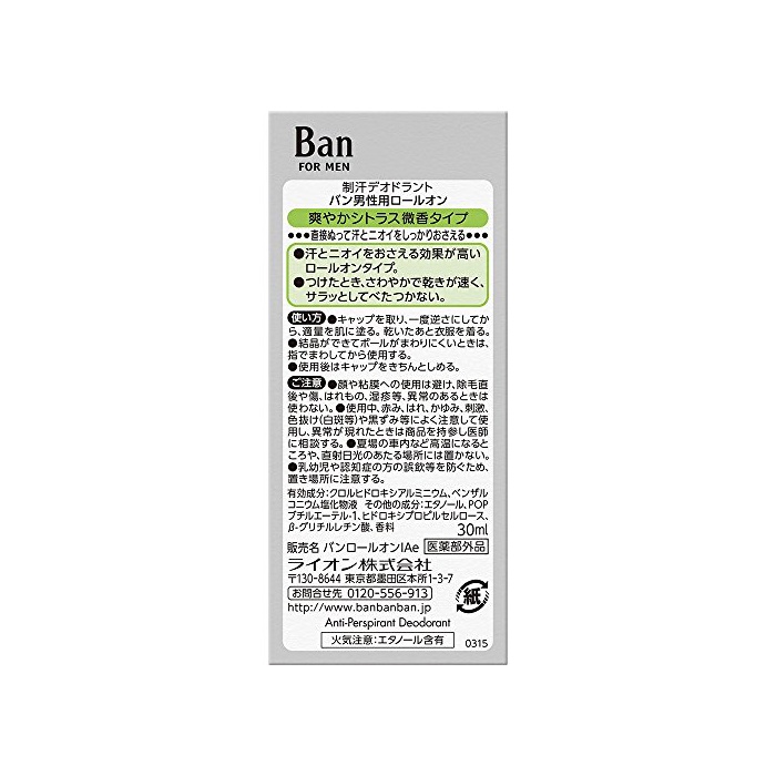 원본상품명: Ban 男性用 ロ?ルオン 30ml