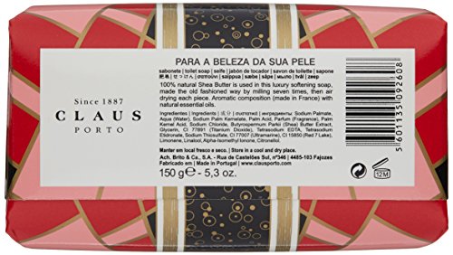 This soap, formulated with 100% vegetable oils, is blended with shea oil for a smooth and creamy lather. It is triple milled to create a long-lasting soap. Fragrances are added to lightly scent the skin. Hand-wrapped in illustrated graphics from the brand's portfolio.