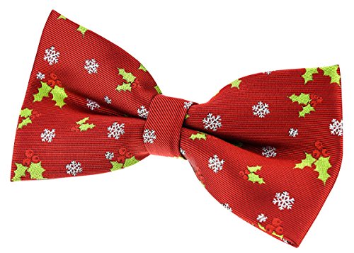 Retreez Herren Gewebte vorgebundene Weihnachten Fliege Holly Blatter 13 cm