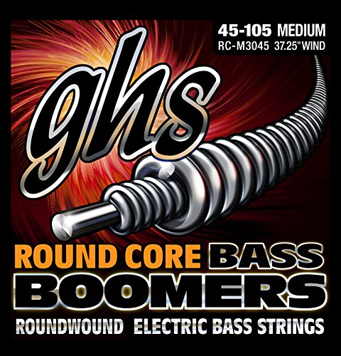 Studio : GHS Publisher : GHS Binding : Electronics Product Description BASS BOOMERS 45-105. Designed by bassists in the office and road-tested by bassists from the Artist Family, Round Core Bass Boomers have a full frequency sound (generous in the low mids) with a clear, soft high end. Wound over a round core, these strings will sing on the stage, in the studio or in rehearsal. 0
