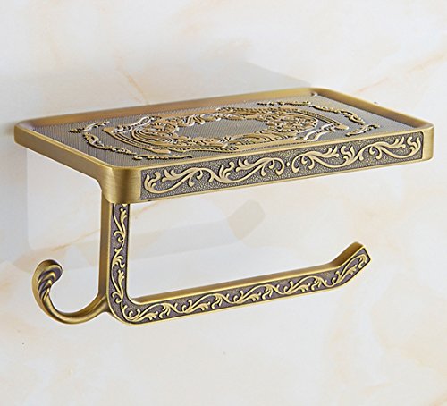 - 【RETRO STYLE TOILET PAPER HOLDER】: Exquisite antique design, very decorative and practical. Gorgeous carved pattern makes your house full of elegance and magnificence. Environmental premium zinc alloy and unique brass finish, anti-corrosion, anti-oxidation.