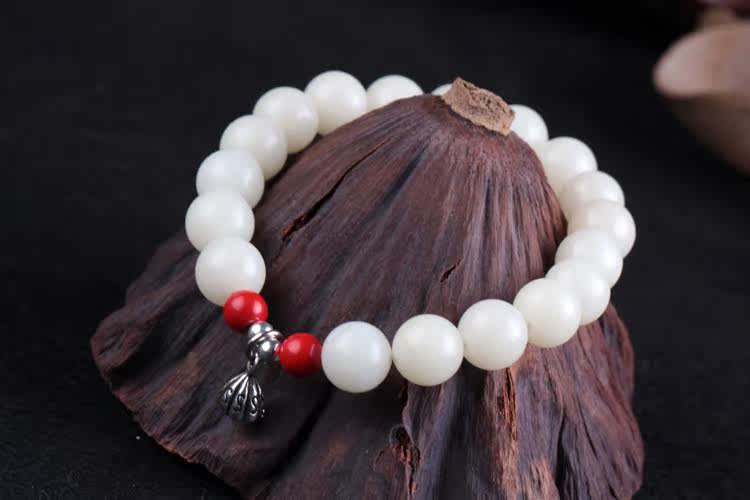 Material: natural white Bodhi root ball with a Cinnabar Silver coconut flakesSpecifications: bead diameter of about 9mm for net wrist 14-15cm (S925 sterling silver pendant lotus paragraph)Bead diameter of about 11mm for net wrist 16-18cm (cinnabar beads drum section)