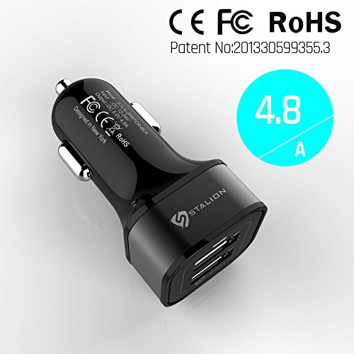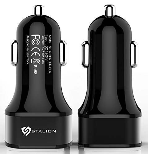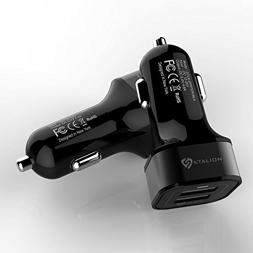 Car Charger: Stalion 2-Port Dual Multiple USB Vehicle Charger Universal Portable Rapid Travel Charger (Jet Black) for All Smartphones Tablets GPS & Cellular Devices