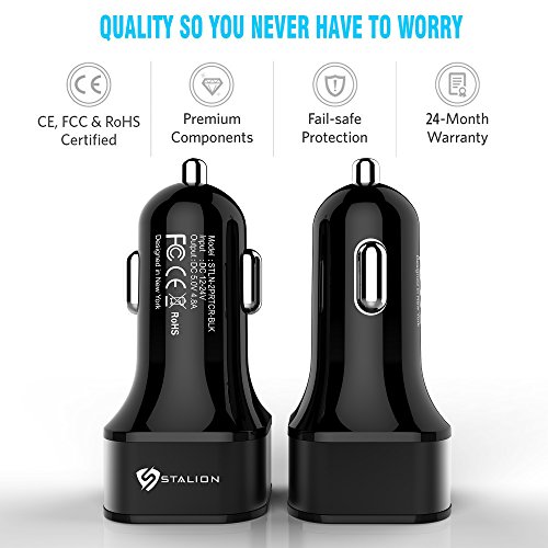 RECHARGE AT OPTIMAL SPEEDS With Stalion Smart Technology, our cell phone car charger recognizes your device and automatically charges at optimal speeds to ensure speedy recharging, and there's never a drop in performance when all both ports are full. The Stalion 2-Port is a fast car charger whether you have one device plugged in or two!
