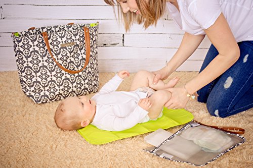 No need to sacrifice your style! The new SodaBean City Sidekick Diaper Bag for moms makes a statement for any occasion. It's both practical and fashionable! STYLISH - You'll be a hit with the fun multi-colored blue/coral design or sneak in a surprise with the splash of lime green interior with the classic grey/white exterior. PRACTICAL - This diaper bag for girls or boys is multi-functional! You can pack it up for that weekend getaway, use as a carry-on or as a fashionable around the town tote. As a nappy bag it is roomy enough to fit all the stuff you need for your baby girl, boy or multiple children! VERSATILE - There are 6 handy interior compartments to hold your change pad(included), extra diapers, clothes, blankets, and toys. There is one secure zippered pocket on the outside for easy access to keys, and cell phone, and wallet! This baby diaper bag maintains its sturdy form and has a zip top closure to keep all your essentials secure and easily accessible! For versatility you can use the tote handles for over the shoulder use or we have included a sturdy adjustable strap to help distribute the weight across your chest for a messenger bag style. GREAT VALUE - Quality of a top designer diaper bag with an affordable price. The price is the only thing cheap about this fashion bag. Our quality materials and superb craftsmanship rivals any high-end bag. SodaBean's City Sidekick is big enough to feel like a tote bag, comfortable enough to feel like a back pack, and cute enough to feel like a designer purse. From maternity to eternity! Backed by our worry free 90 day 100% satisfaction guarantee!Feature