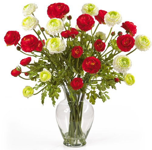 Nearly Natural 1087-RW Ranunculus Liquid Illusion Silk Flower Arrangement, Red/White