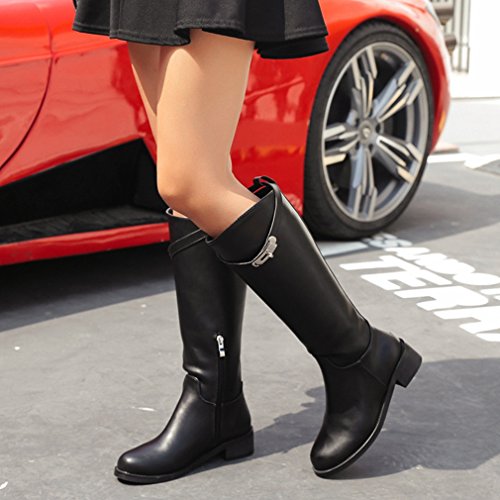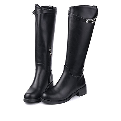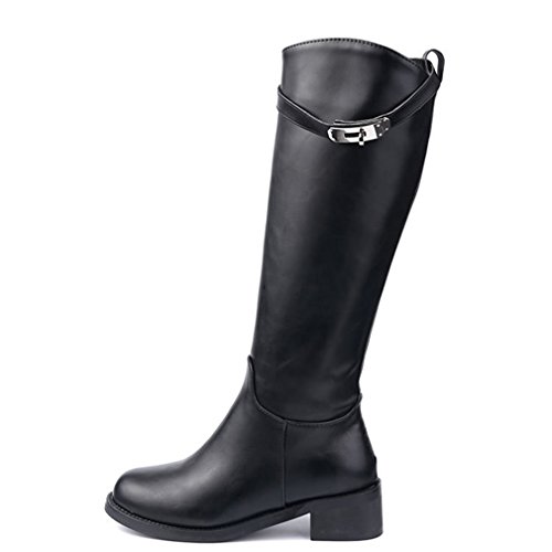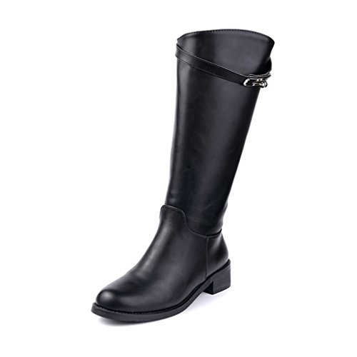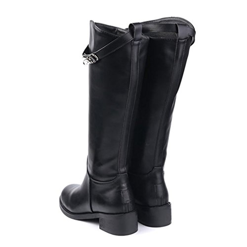 (Btrada)/Women's/Boots/DIRECT FROM USA/Btrada Women's Over The Knee Thigh High Boots Wide Calf Block Heel Belt Buckle Black Combat Rid...