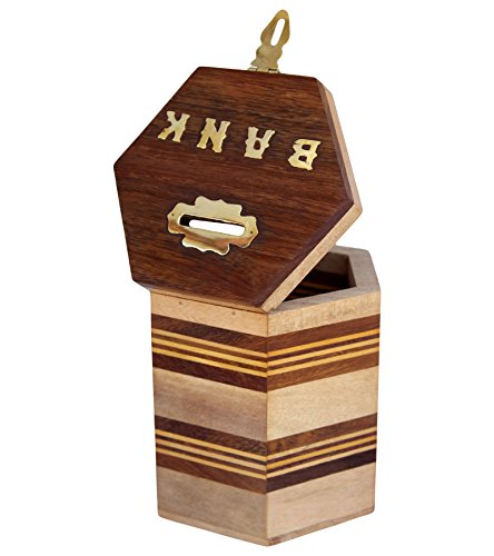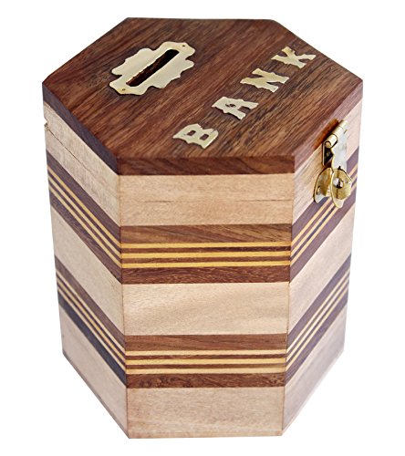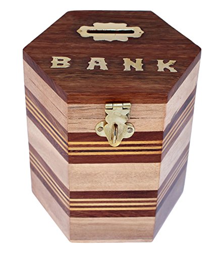 ITOS365 Handcrafted Wooden Money Bank Safe Kids Piggy Coin Holder Box Gifts, 4 x 4.8 Inches