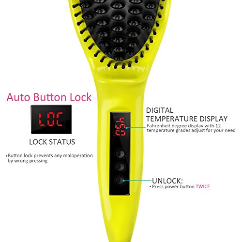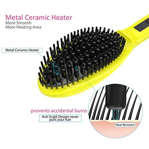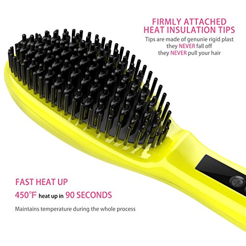 -Metal Ceramic Heater Technology,The hair brush uses MCH (Metal Ceramic Heater) Technology to heat up to 450°F/230°C, allowing you to detangle and straighten hair by simply combing through it. Ceramic plates also release negative ions, which helps your hair become shinier and smoother.