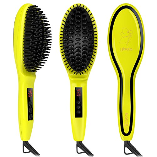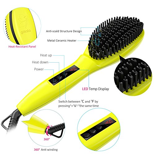 The gisala hair straightener brush you have to feel to believe! It can be used on damp or dry hair. This Hair Straightening Brush combines hair straightener brush and comb for friction-free. This combination allows hair to flow effortlessly for a smoother,straighter style, with absolutely no pulling or binding, while the ceramic plates seal in moisture to keep hair silky smooth for days after use