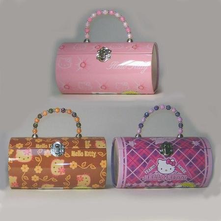 Product DescriptionCute Hello Kitty Tin Roll Bag Purse with beaded handle. Measueres 7" by 4". You will receive one of three styles shown0
