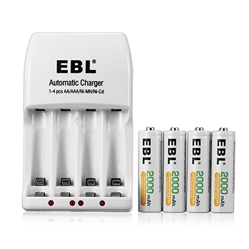 Packages: EBL 4 Counts AA 2000mAh Ni-MH batteries with 4 Bay AA AAA Rechargeable Battery Charger