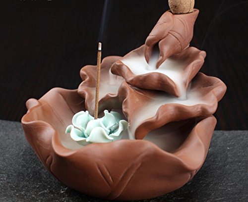SPARIK ENJOY Lotus Leaf Ceramic Backflow Incense Tower Burner Statue Figurine Size: 4.9 × 4.7 × 3. inch