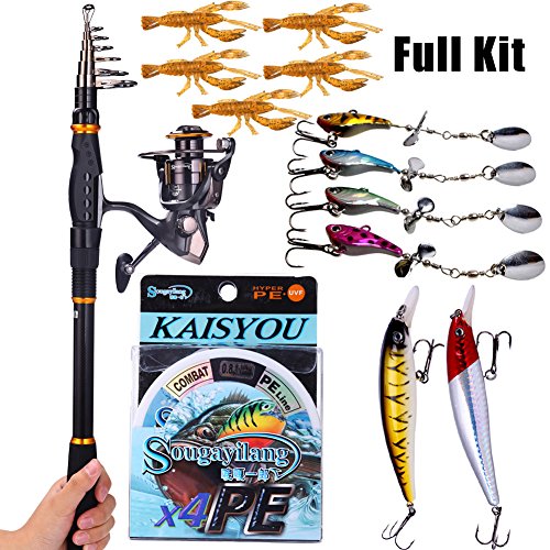 Fishing Full Kit Package Include: 1 x Fishing rod 1 x Fishing reel 1 x Superbraid fishing Line (Green 100M) 2 x Minow Lure 4 x Lead fish Lure (Spinning Full Metal) 5 x Soft Shrimp Baits