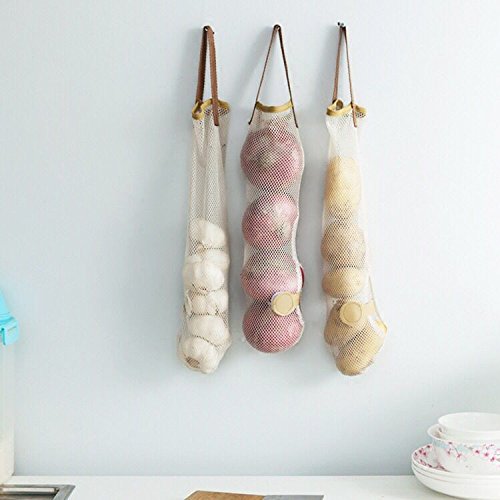 - Great to storing fruit, garlic or SMALLER ONIONS, potato ect; Breathable and hanging mesh bag design, waterproof,mould proof.