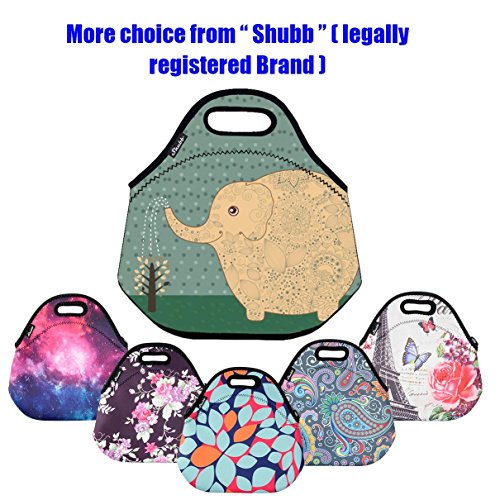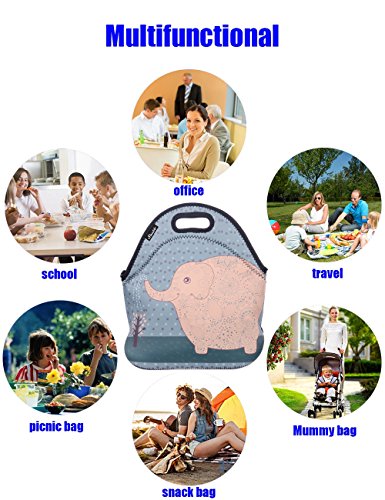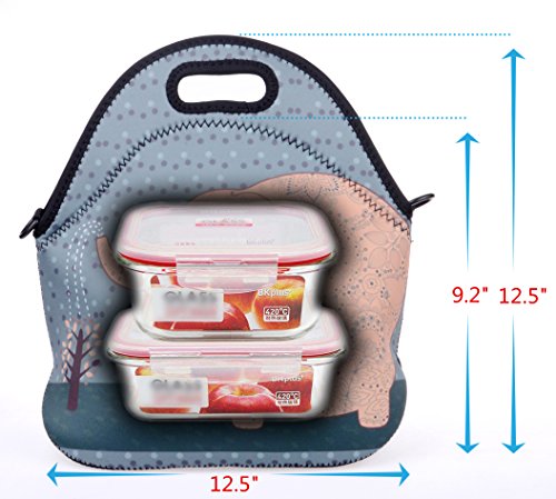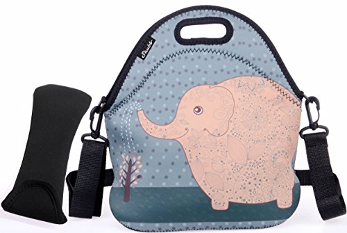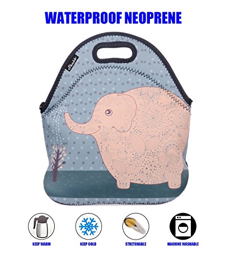 Large Lunch Bag Tote Set, Shubb Neoprene Picnic Cooler Lunch Box for Women and Kids - Blue Elephant