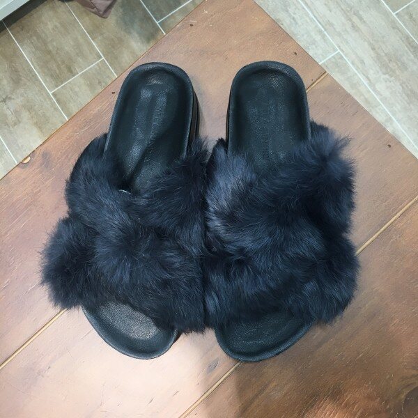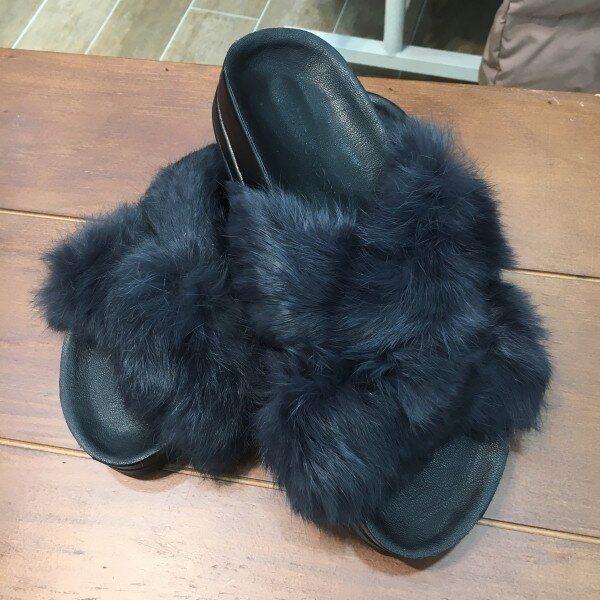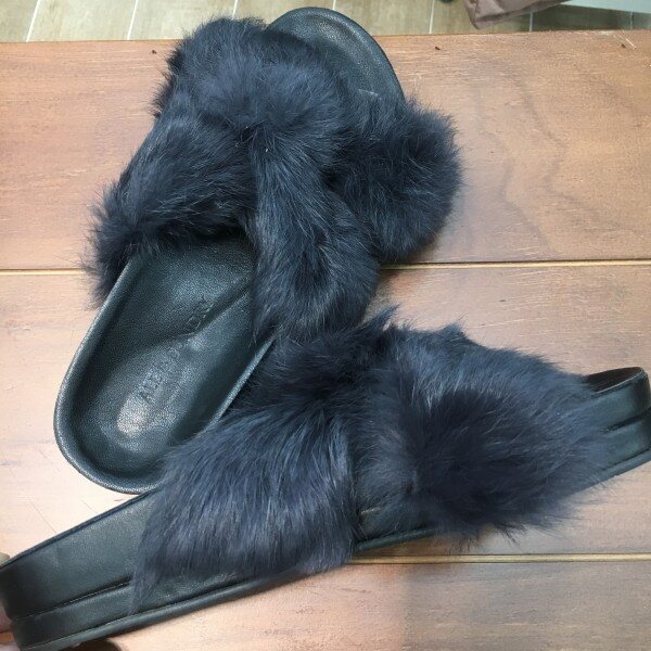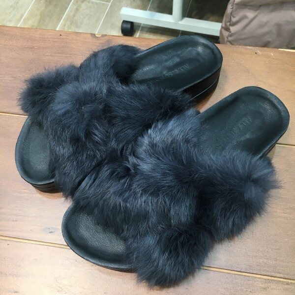 편안한 슬리퍼지만 고급진 퍼 슬리퍼 소개해드려요~ 전체적으로 소가죽혼방으로 밑창을 디자인 하고 퍼부분은 부드러운 토끼털로 만들어 진 제품이에요! 퍼 중간에 한번 꼬여있는 제품이라 발볼쪽이 좁게 디자인되었어요^^ 구매시 참고 부탁드려요~ 굽높이는 3.5cm이며 발볼길이는9cm , 230-240정도 사이즈신으시는 고객님은 66사이즈를 240-250정도 신으시는 고객님은 77사이즈 권장해 드립니다.