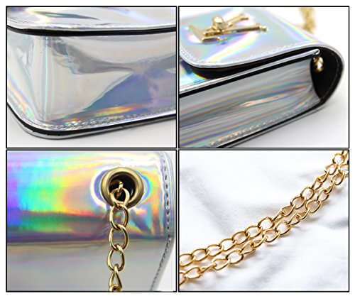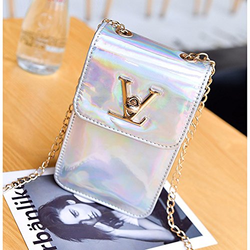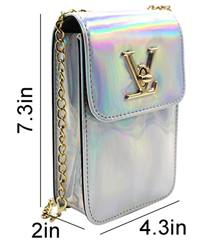 -. Feature : Size: 4.3*7.2*2 inch(Width*Height*Thickness).Fashion chain strap and hasp closure design. / Material: Made of high quality Laser PU leather and Polyester lining.Durable,lightweight and stain-resistant,Easy to clean, just wipe it with a damp cloth. / Compatible with models: iPhone 7 Plus, iphone6/6s/7, iphone5/5s; Samsung Galaxy Note5; Samsung Galaxy S7/S6/S5; HTC and any other mobile phone under 5.5 inch or 5.5inch. / Stylish daypack featured with hottest hologram laser reflection design, makes you unique and fashion,Colors vary with light Change,Unique hologram laser bag will glow under the sunlight. / Versatile: can be used as crossbody bag, shoulder bag, handbag, wallet, purse, clutch bag.It will be your best gift to your family and friends,of course,Whether you use or as a gift to others all worth to try.