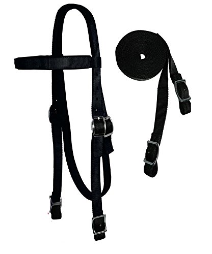 Tahoe Nylon Padded Browband Draft Horse Headstall with Split Reins, Draft Horse Size