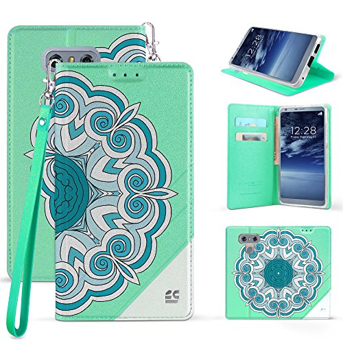 -. Title : LG G6 Case PU Leather TPU 2 Tone Card Slot Magnetic Close Strap Kickstand White Teal Pattern
