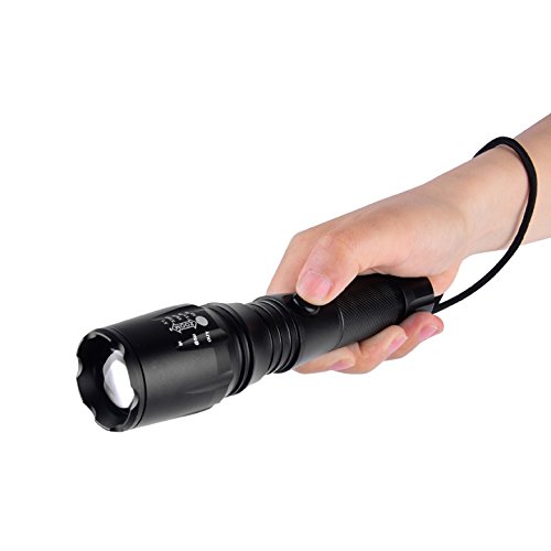 5 LIGHT SWITCH MODE FLASHLIGHT: Full Brightness, Medium Brightness, Low Brightness, Strobe Brightness, SOS. ZOOM ADJUSTABLE FOCUS: The tactical flashlight can be adjusted from a small spot light effect to a very large area, just by pulling back on the cylinder of the flashlight.
