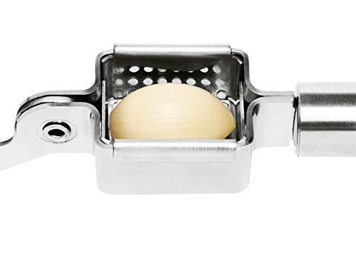 USER-FRIENDLY, SOLID GRIP HANDLE → Our brushed-metal handles are ergonomic and built for a solid grip to provide maximum leverage for pressing out peeled or unpeeled garlic. Whether your hands are big or small, our handle will accommodate all hand sizes.