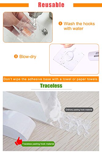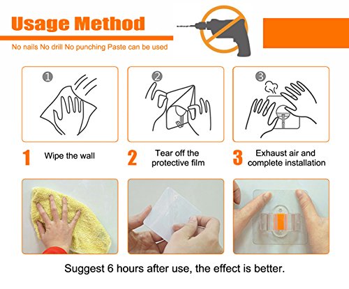 -. Feature : Material:PC+PET+GEL. Specification:80*80mm. Max.loading:8Kg. / Works on a variety of surfaces,like wood,tile,leather,Ceramic,Metal and more. / This is a magic hook, no scratch and no residual glue, waterproof and oilproof, Can reuse after wash and dry. Note that do not use towels and paper towels to wipe the surface of the adhesive. / Great for hanging shower and bath accessories in a bathroom/kitchen/office or living room utensils and tools on a tile backsplash. / Steps to use:first wipe the wall clean,and then tear the film,and then flat paste to the wall,and the inside of the air to remove clean. Recommended for posting 6 hours after use.
