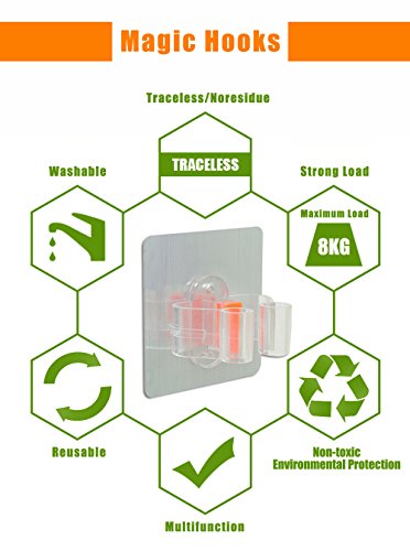 -. Title : Smarttech Broom Mop Holder Traceless Adhesive Wall Mounted Mop Gripper Broom Hanger Umbrella Holder with Spring Clip Design,Bathroom Kitchen Storage & Organization Rack