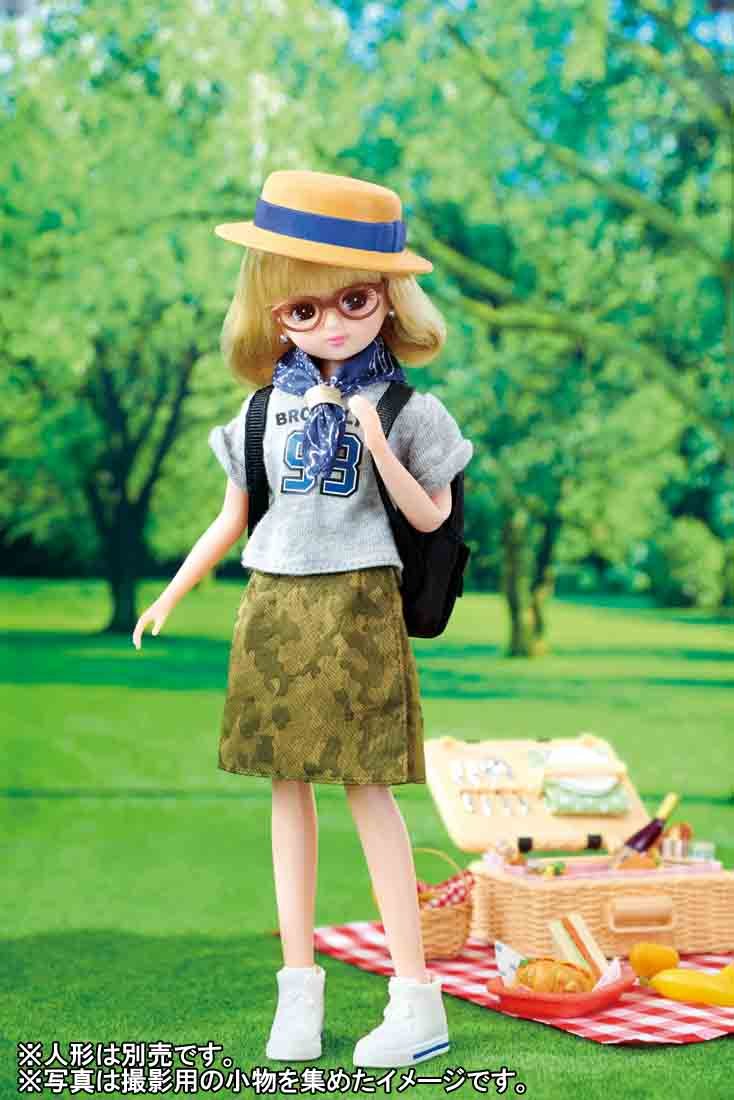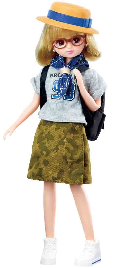 T-shirt (1), skirt (1), stole (1), eyeglasses (1), hat (1), backpack (1), shoes (1)