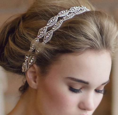 Meiysh Double Strip Diamond Bride Bridal Wedding Accessory Hair Head Band Wear Rhinestone Jewelry Headdress