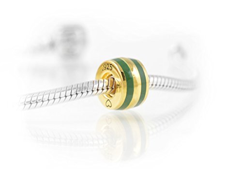-. Feature : Vermeil Gold on Sterling Silver for Quality / Threaded Core for Added Security / Durable Green Enamel / Stamped US BORDER PATROL / Fits , Biagi, Chamilia, Kay Jeweler, Charmed Memories Bracelets and Many More!
