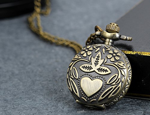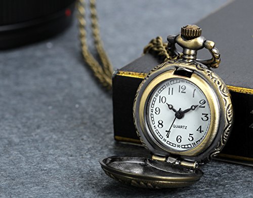 -. Feature : 100% Brand new + One velvet gift bag / Quartz movement + Vintage pendant / Analog display + Scratch resistant metal cover / Long bronze pocket watch chain makes you elegant / Withstands rain and splashes of water, but not showering or submersion