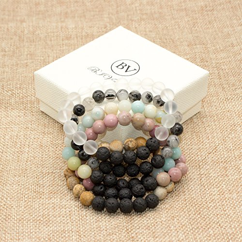 Bivei Lava Rock Stone Essential Oil Diffuser Bracelet - Natural Semi Precious Gemstone Beads Healing Crystal Bracelet