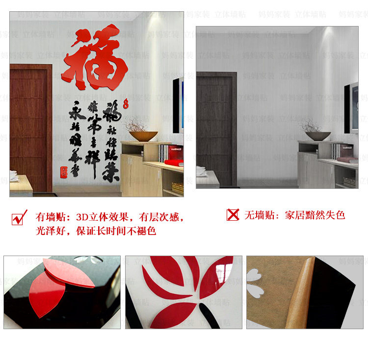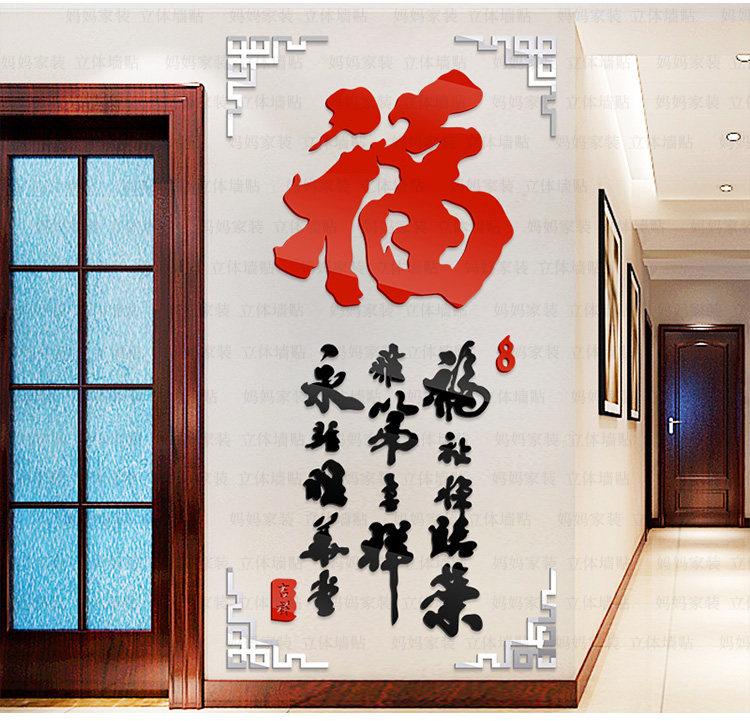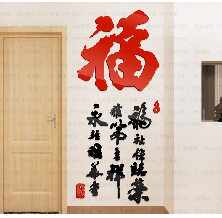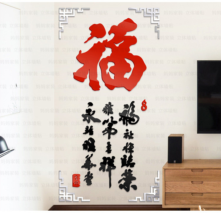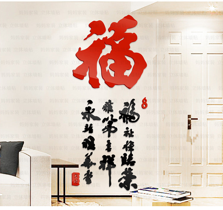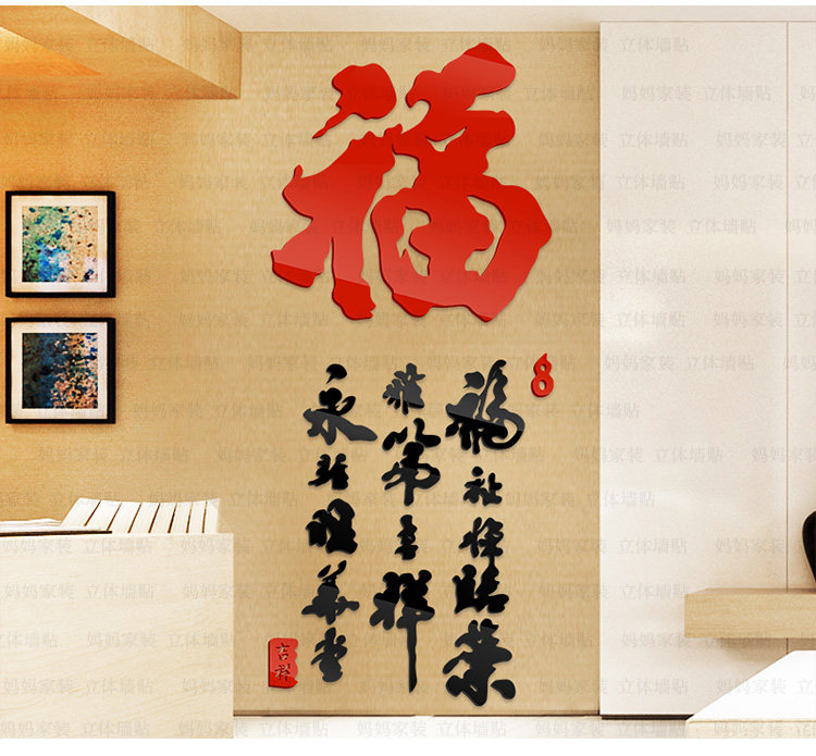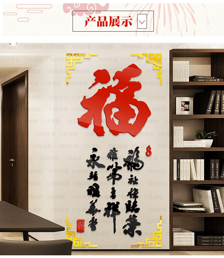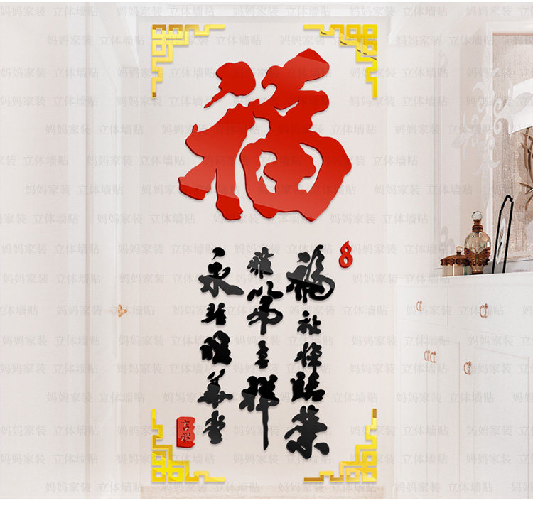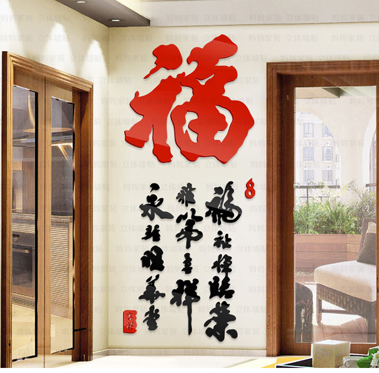 中国福吉祥语3d亚克力立体墙贴客厅餐厅玄关电视背景墙装饰墙贴画