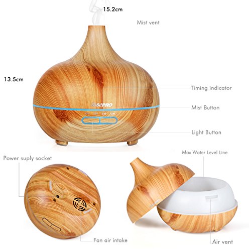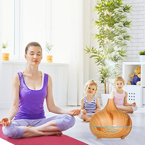 Ultrasonic air humidifier, RISEPRO 300ML Essential Oil Diffuser,4 timer modes w/ multiple mood lights' choices, for Bedroom,Office,Yoga,Study,Spa CK1702