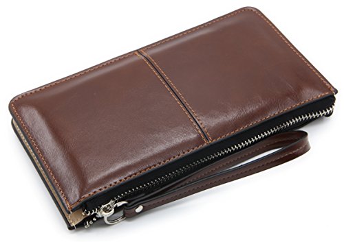 -. Feature : Import. / Materials:Made of high quality PU leather,the oil wax leather makes the purse more luxury. / Structure:Contains A main compartment with 4 big pocket,8 card slots,2 bill slots and 1 zipper pocket.Can hold a passport,iphone 6 plus,lip gloss,cards and cash.The leather wrist strap makes the clutch wallet easy to carry. / Dimensions:8.2" x4.1" x0.9" / Zipper closure.Fit iPhone 6 Plus & Sumsung Galaxy S7/S6