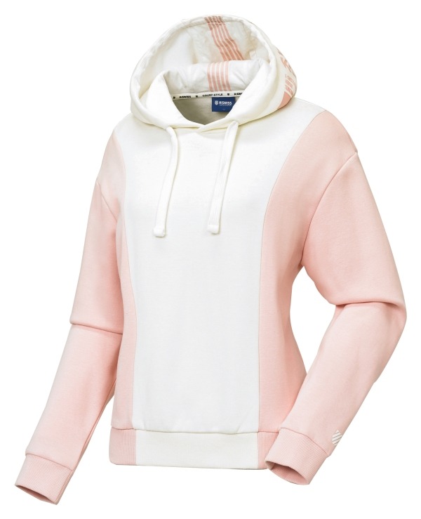 면과 폴리가 혼방된 CP 기모 소재를 사용한 여성 배색 후드 티셔츠