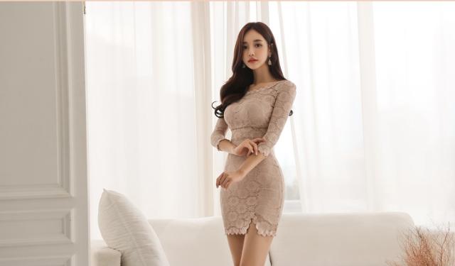 レースの透け感が大人セクシーに、ボディにフィットしてタイトラインが美シルエット魅せ。