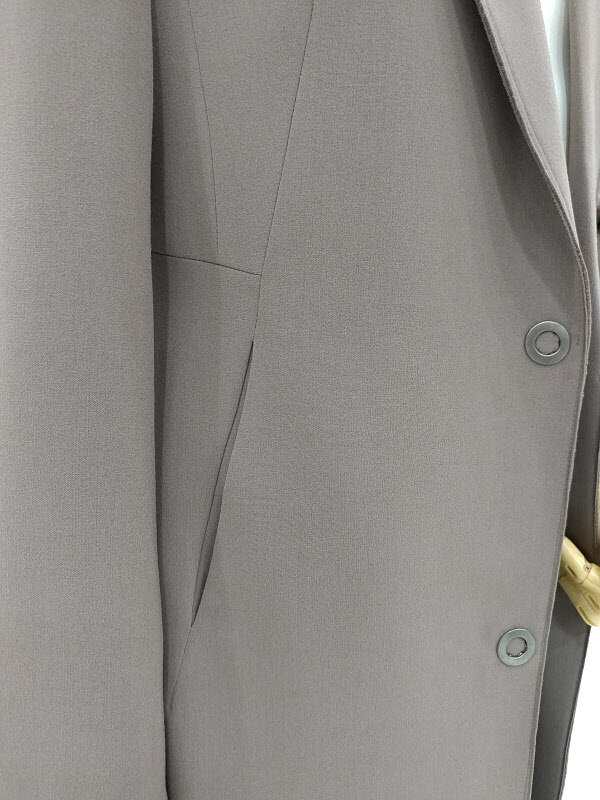 롱이쉬한 기장감이 다양한 아이템과 스타일링에 좋으며 어깨 얇은 패드가 들어있어 군더더기없는 숄더라인을 보여드립니다