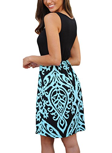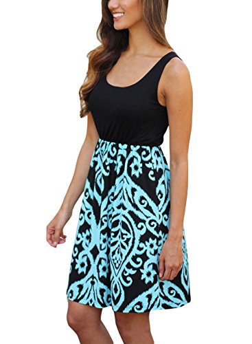 Bdcoco Women's Summer Sleeveless Print Beach Party Loose Casual Mini DressMatrial:Polyester + SpandexColor:,Black and Taupe,Aqua,Black and AquaStyle:Cute,CasualOccasion: cocktail party,beach, Summer4 sizes available:Small Medium Large X-LargeOTHER NOTES:1.The real color of the item may be slightly different from the pictures shown on website caused by many factors such as brightness of your monitor and light brightness(Especially for Fluorescent Colors).2.Please allow slight deviation for the measurement data.3.This listing is for One Dress only, other accessories(if any)are not included.More style provided in our store,worth to have a see.4.Any questions or problems to our products or service, please email us freely, we will reply and solve it for you ASAP.Feature