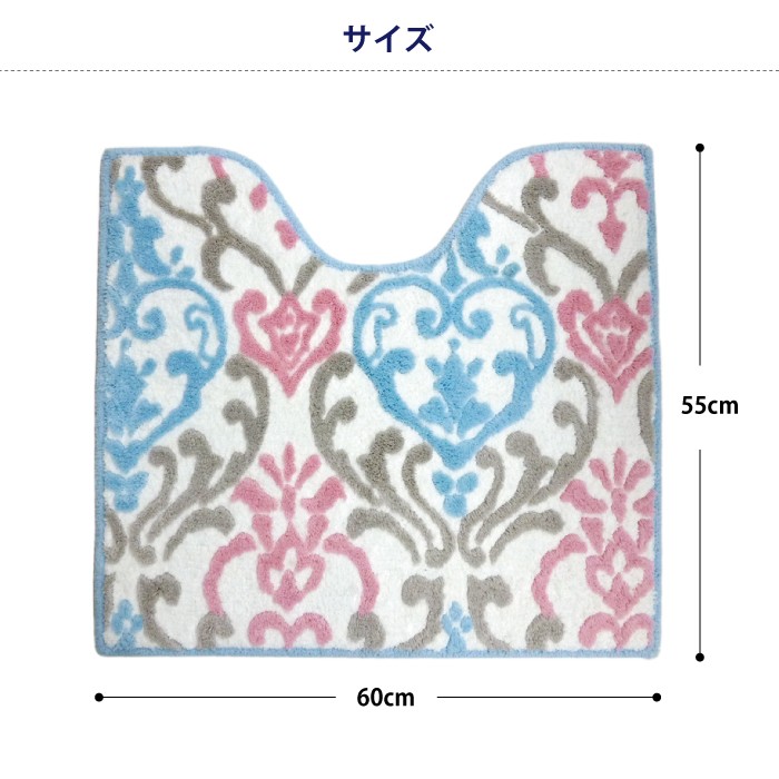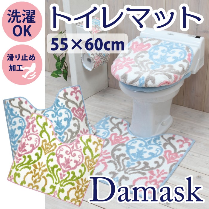 やわらかな雰囲気で空間をおしゃれに彩る人気のダマスク柄デザインのロング トイレマットです!