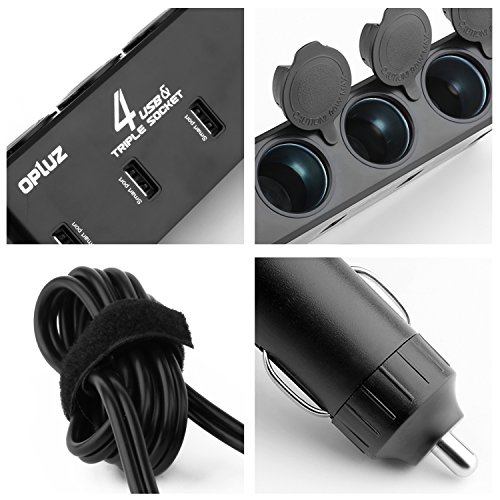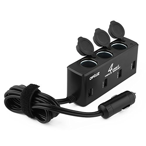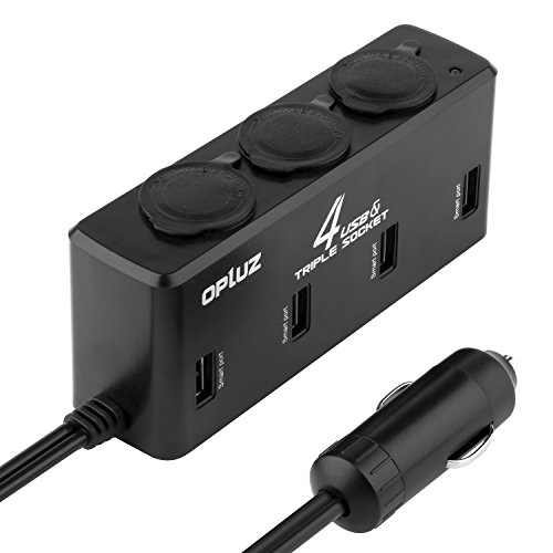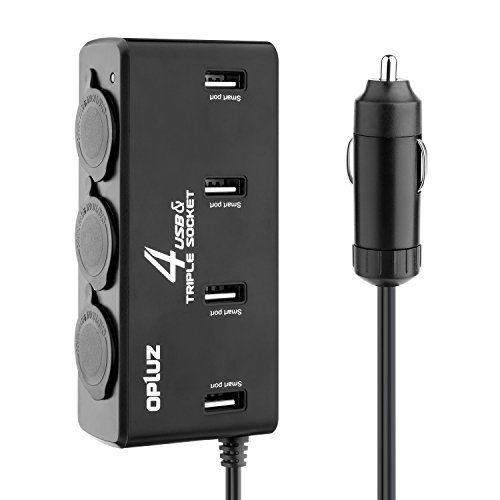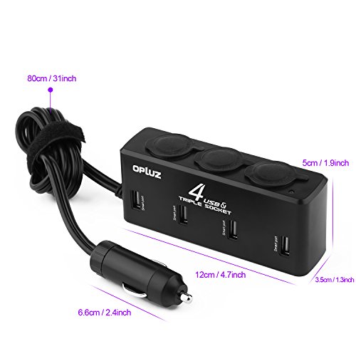 Cigarette Lighter, Opluz 8A/40W 4 USB Charging Port and 3 Sockets Car Splitter with 31 inch Extension Cable| Multi-Function Car Charger Adapter