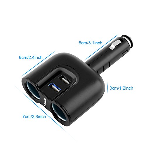 Multi-functions Car Splitter --- Rapidly convert and increase your car cigarette lighter from 1 to 2 car splitter sockets and 2 USB ports for all Smart Phone, Tablet, GPS, etc.