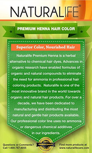 Experience Naturalife Premium Henna, the only coloring agent directly from nature. It gives your hair rich, healthier-looking radiant color from root to tip with 100% gray coverage. Naturalife Premium Henna is a herbal alternative to chemical hair dyes. It colors hair naturally and lasts upto 6 weeks. It is expertly processed in our state-of-the-art facilities to give you maximum freshness and superior quality. Our henna colors hair, adds luster and softness upon regular use while promoting a healthy hair growth. Advances in organic research have enabled contemporary and advanced formulas of organic and natural compounds to eliminate the need for ammonia in professional hair coloring products. Naturalife is one of the most innovative companies in the world towards organic and natural hair products. For over a decade, we have been dedicated to manufacturing and distributing the most natural and gentle professional hair products available. Our professional color line is Organic Color Systems which uses no ammonia or dangerous chemical additives in our ingredients.Feature