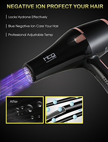 HTG Professional Hair Dryer Quick Dry Hair 1875W Negative Ion Hair Blow Dryer Heat 2 Speed and 3 Heat Setting AC Motor HT037 Salon Use and...